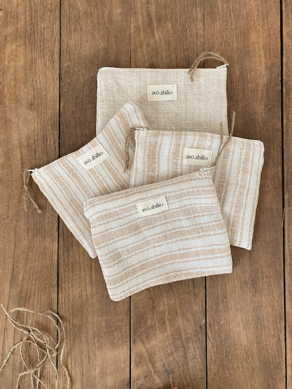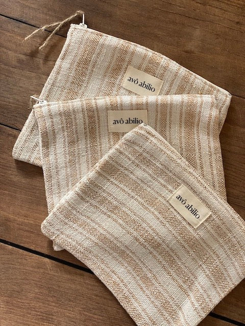 La pochette avô abilio est entièrement confectionnée à partir de lin du Portugal qui a déjà connu le monde, une histoire, une famille. Nos pochettes naissent de notre volonté et démarche d'upcycling.